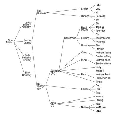 Thurgood, Graham. 2017. Sino-Tibetan: genetic and areal subgroups. In Graham Thurgood & Randy J. LaPolla (eds.), Sino-Tibetan Languages, 2nd edn. London & New York: Routledge. 1-39.