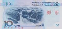 我们每天使用的人民币上,也有婆罗米系文字。在人民币的背面右上角,分别有汉语拼音、回鹘文、藏文、维文和壮文书写的“中国人民银行”和人民币对应的面值。第二排后半部分༄༅།།ཀྲུང་གོའི་མི་དམངས་དངུལ་ཁང་། སྒོར་བཅུ།为藏文。