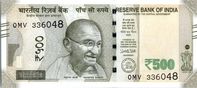④肖像右边的मैं धारक को पाँच सौ रुपये अदा करने का वचन देता हूँ(I promise to pay bearer the sum of five hundred rupees),即“我承诺向持有人支付五百卢比”。下方为前印度储备银行行长(गवर्नर Governor) उर्जित आर पटेल(Urijit Patel)的签名。
