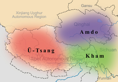 使用藏文的藏语支中各语言和方言,有明显的差异。中国境内的藏语主要有卫藏(Ü-Tsang)、康(Kham)和安多(Amdo)三个方言区(图TIB-1)。卫藏方言,又称中部藏语,有4个声调,辅音送气与不送气对立,存在连读变调现象;而安多方言保留较多古藏语的特征,如清浊对立、送气不送气对立、词首复辅音,同时安多方言还是非声调语言。