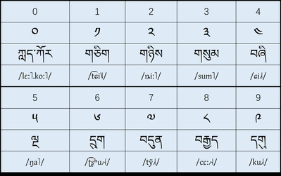 表TIB-4 藏文的数字:IPA标记的发音为拉萨藏语